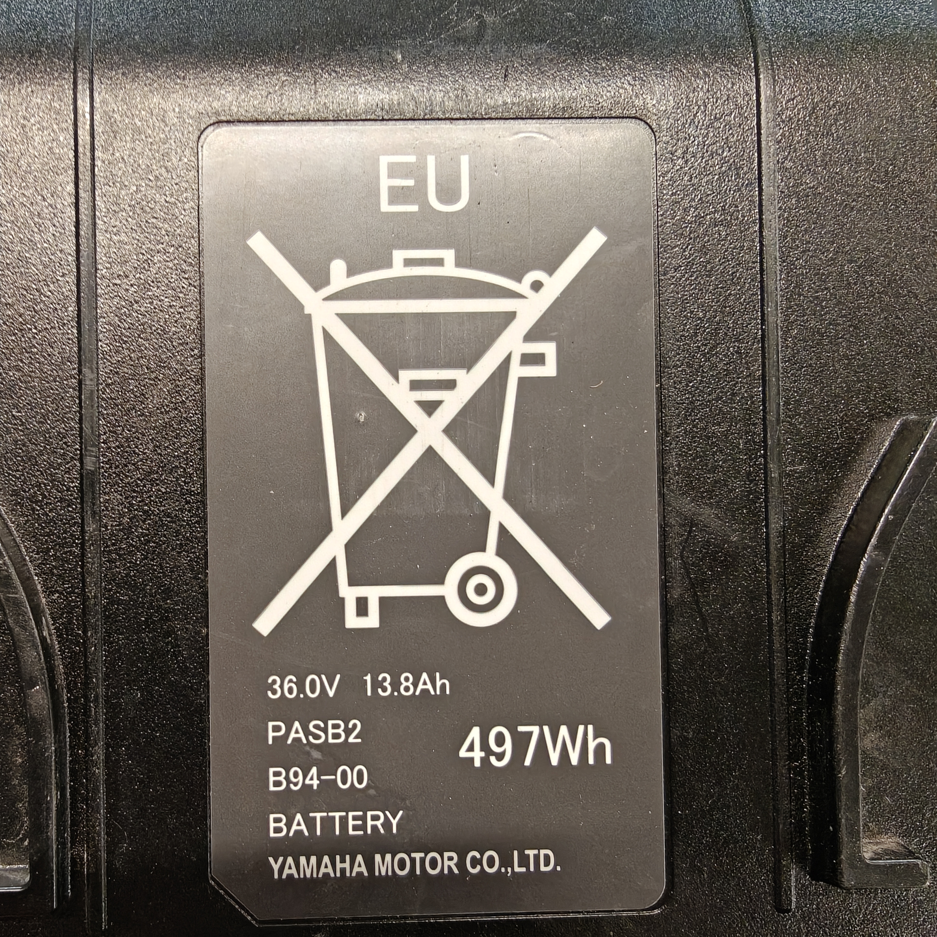 Op deze accu staat het merk van de accu er duidelijk op, een Yamaha met type nummer PASB2 maar ook B94.